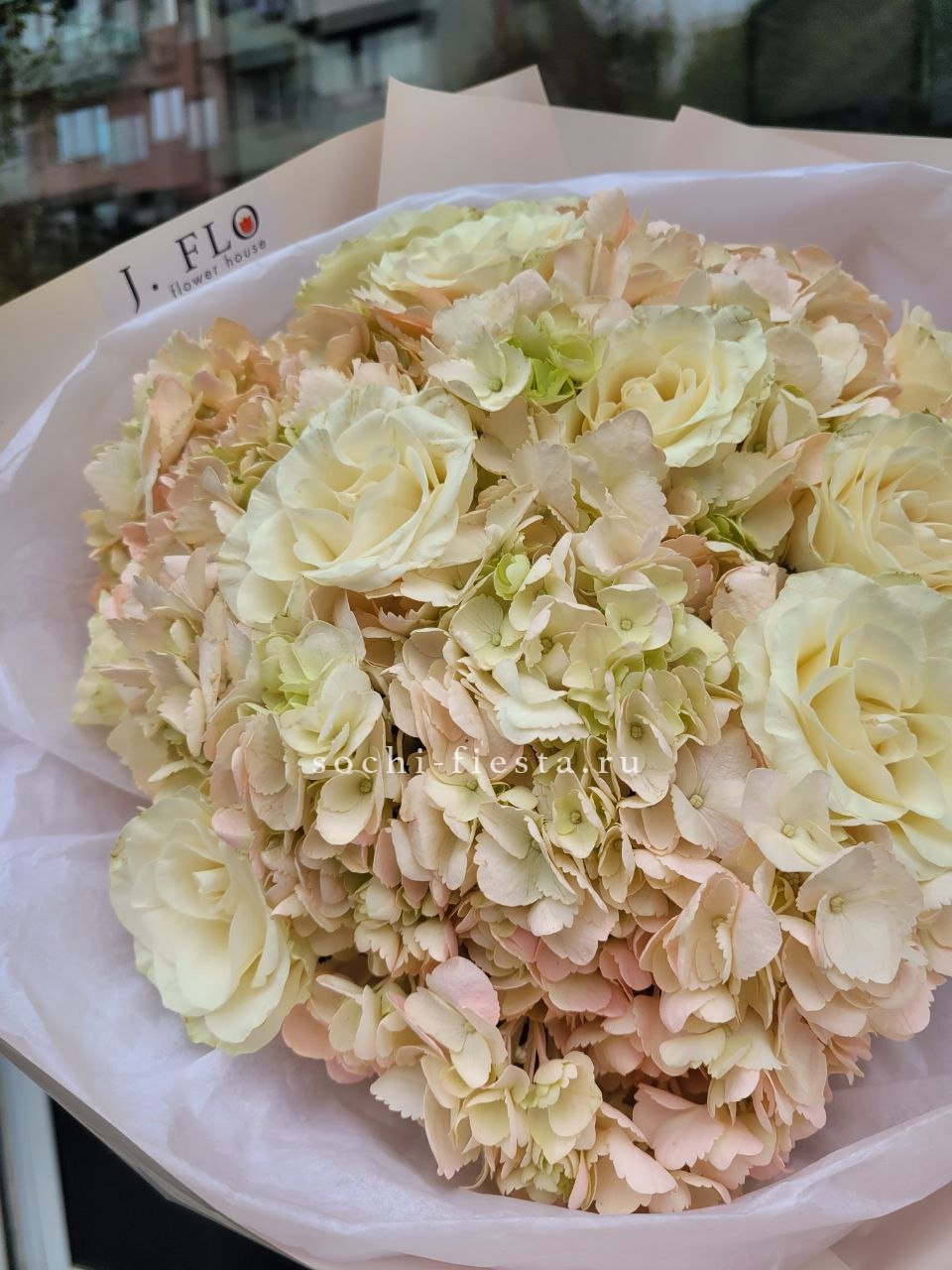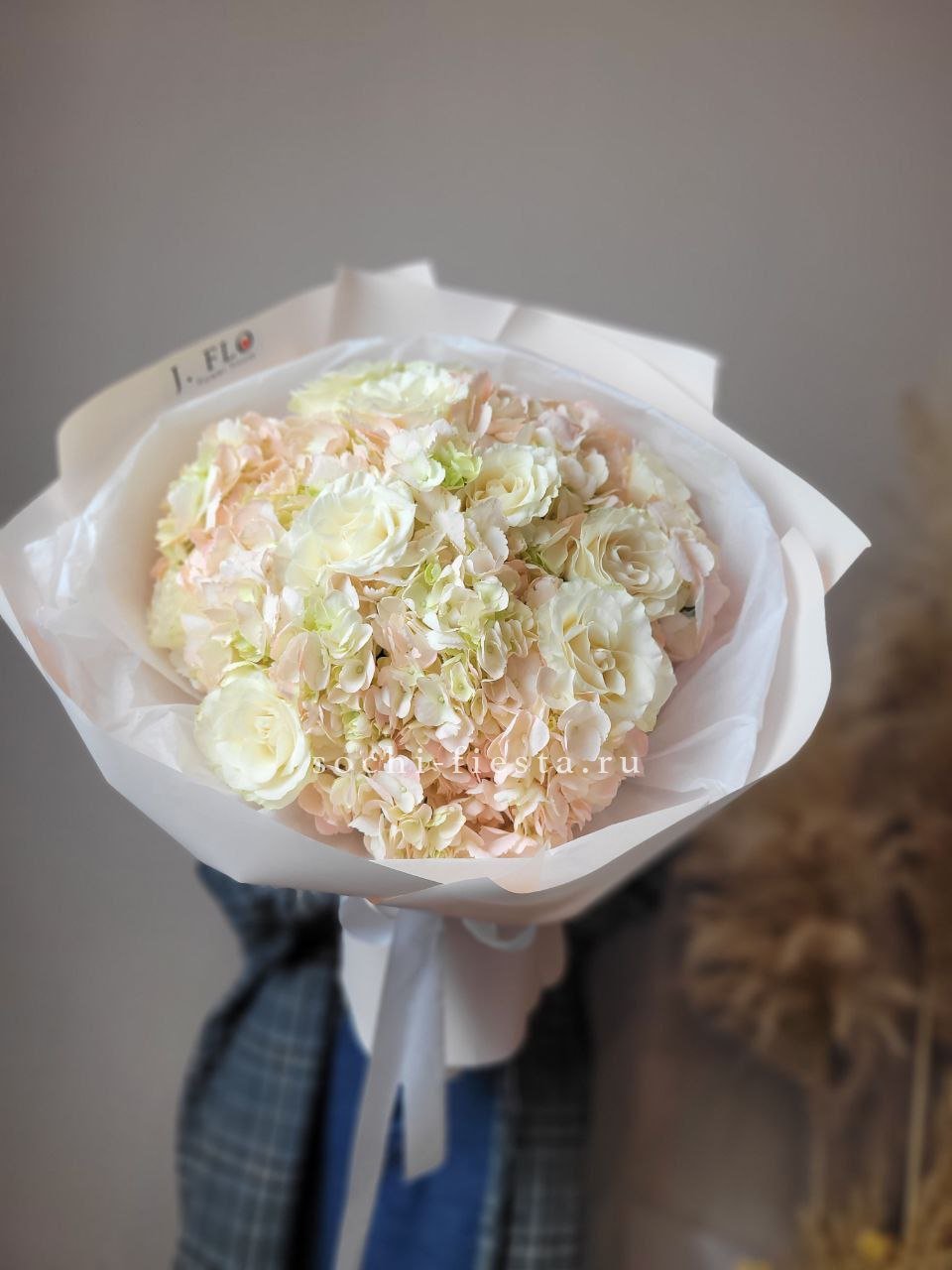 Эта роскошная композиция в модной упаковке объединяет благородные цветы с разными текстурами, создавая многогранный и богатый образ. Деликатные оттенки символизируют утонченность, элегантность и безупречный вкус. Букет подчеркнет индивидуальность дарителя и станет незабываемым акцентом любого торжества.