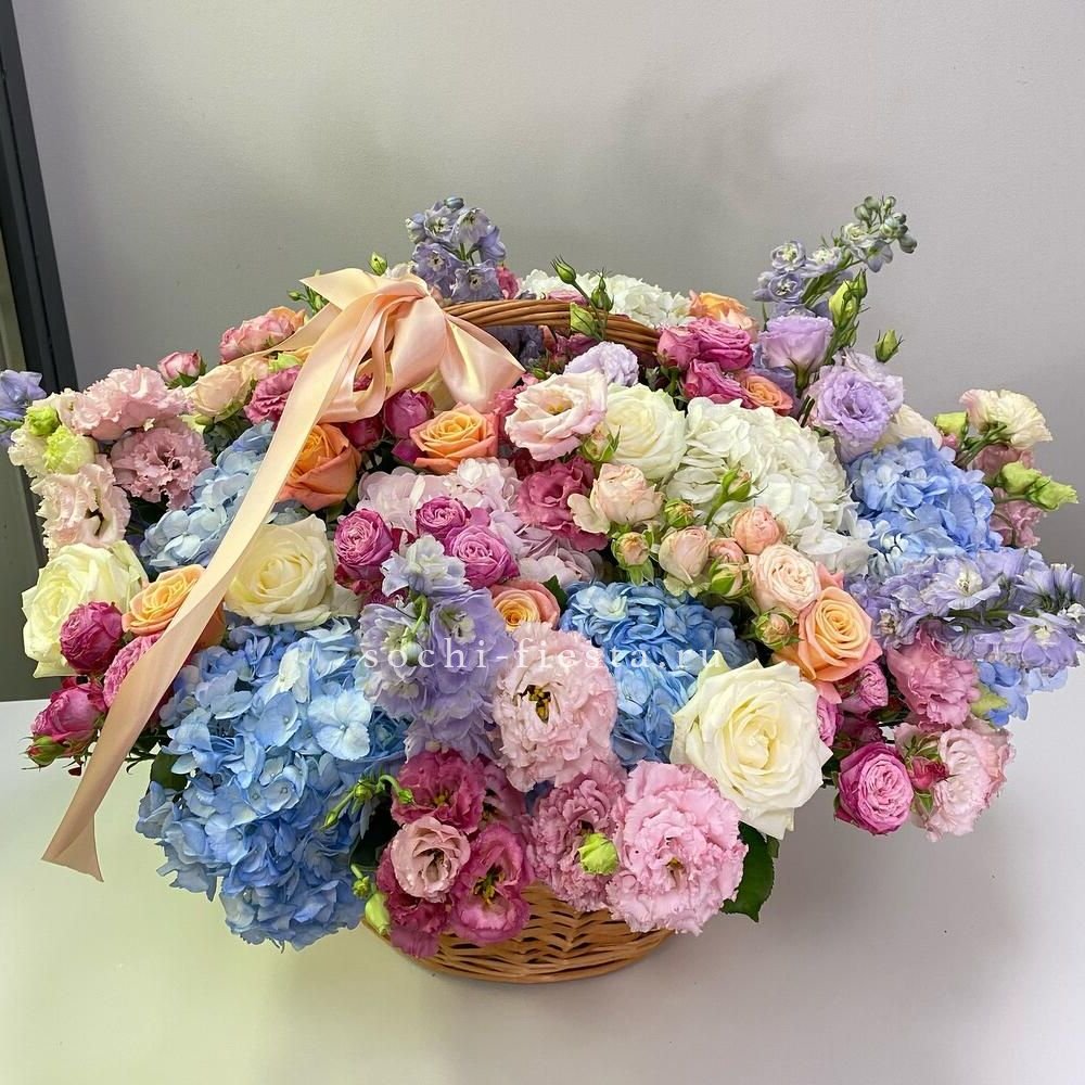 гортензия- 29 шт., дизайнерское оформление По желанию заказчика, композицию можно оформить в корзину.