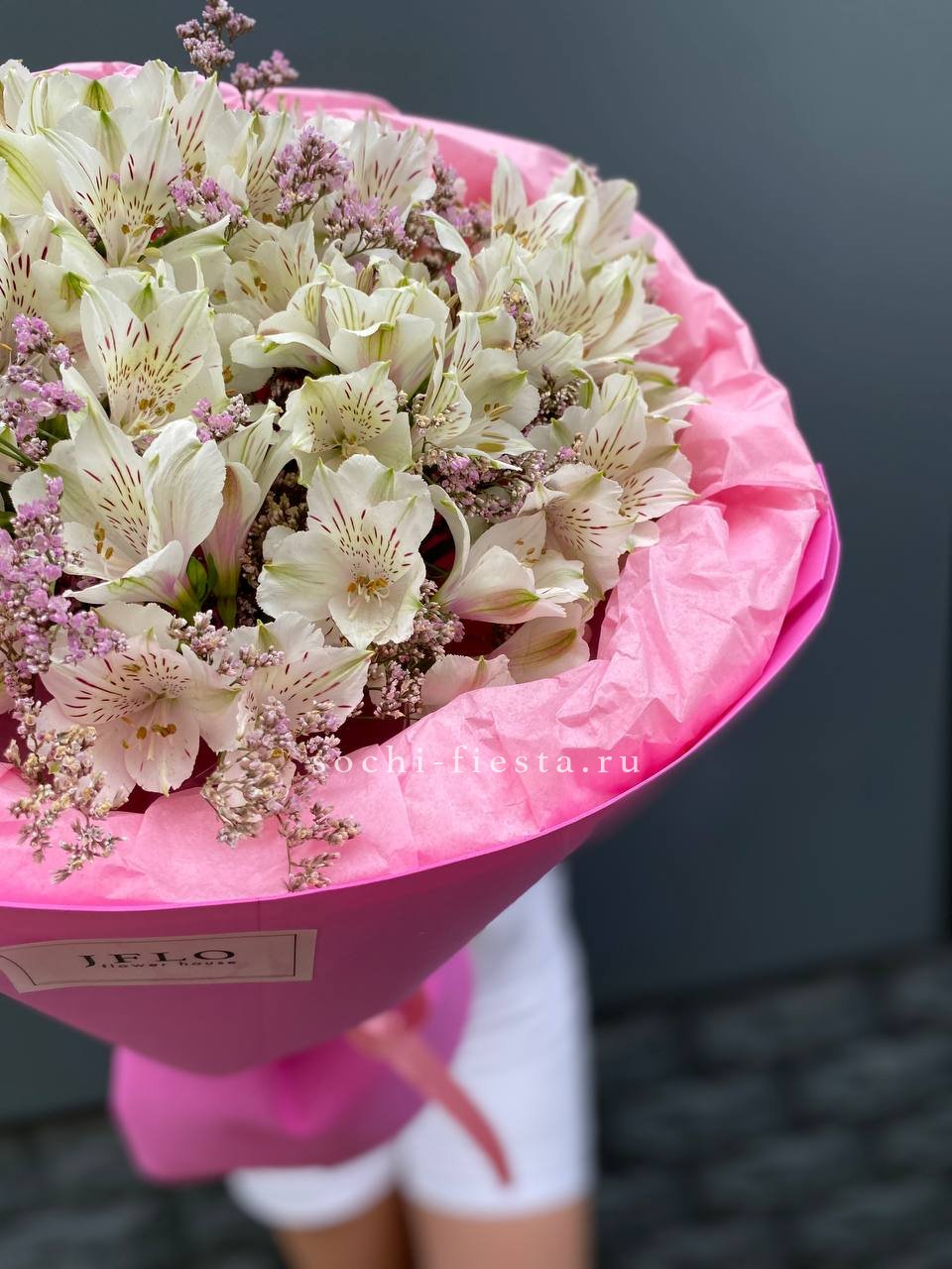 белые альстромерии - 11 шт., лимониум оформление.