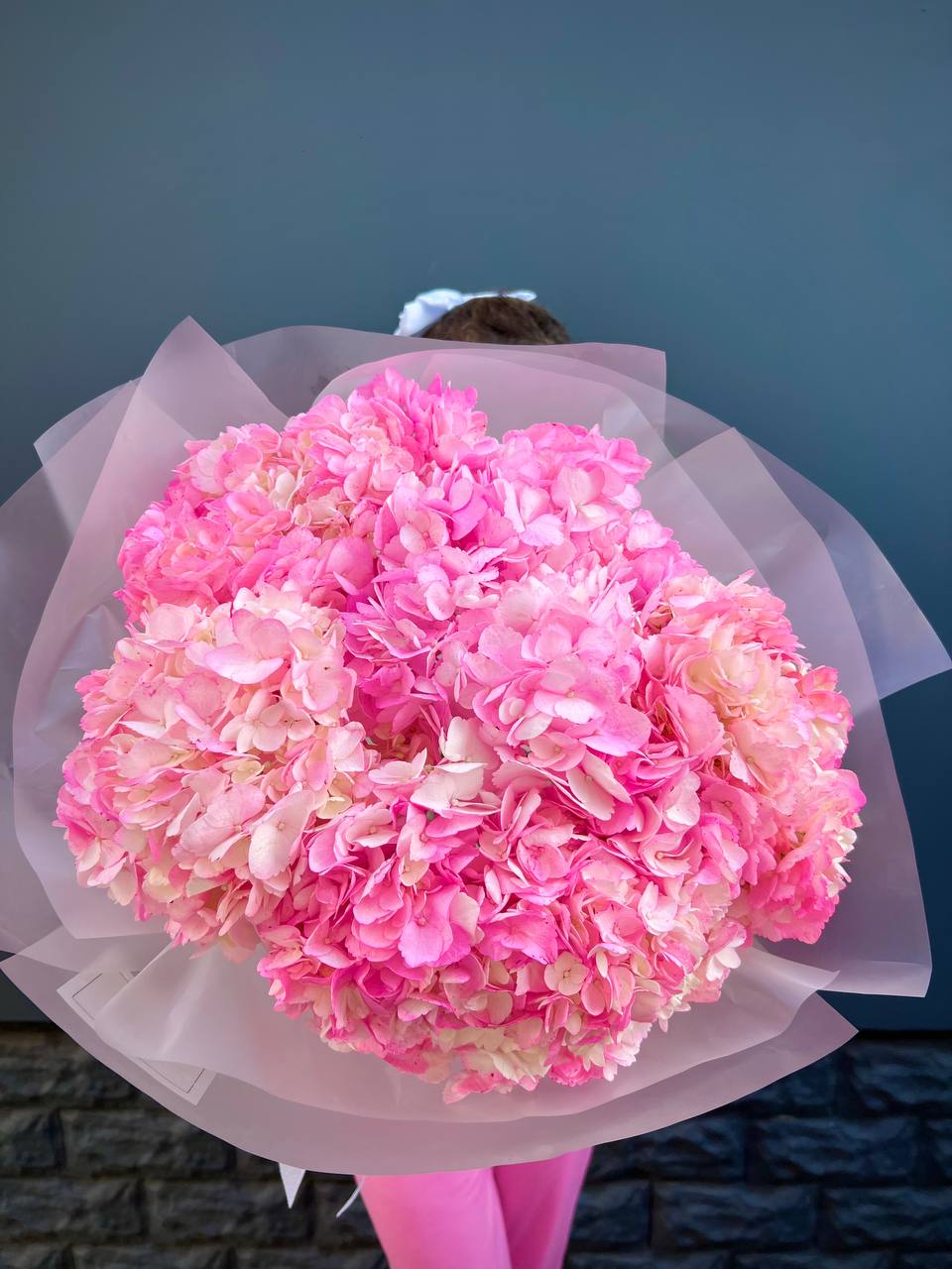 гортензия - 3 шт., лента, дизайнерская упаковка.