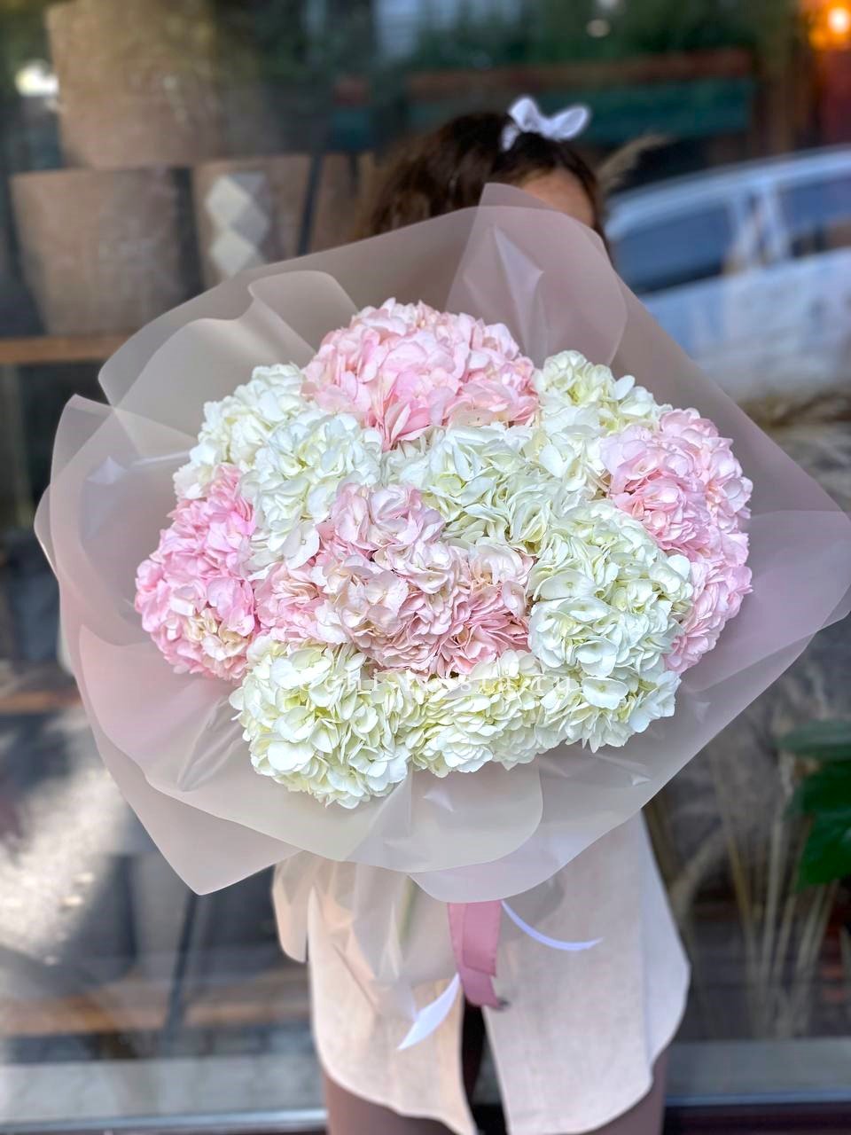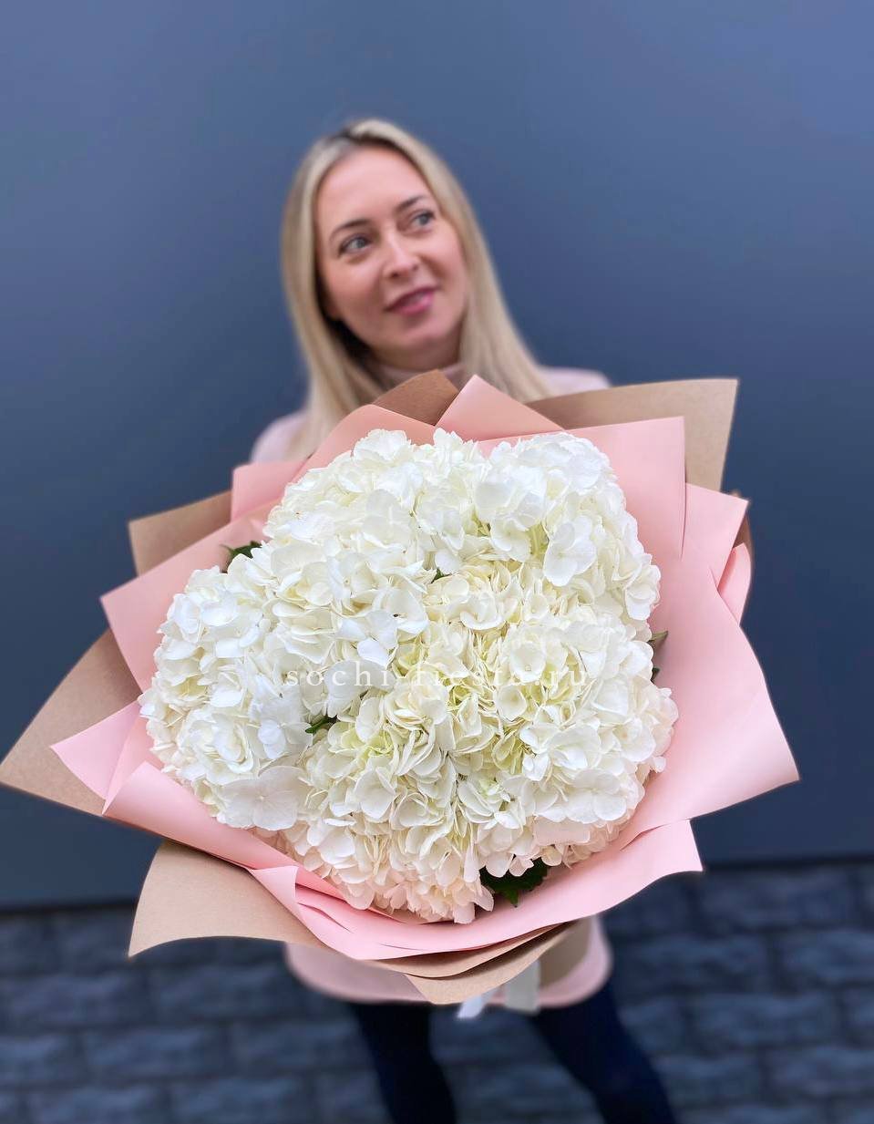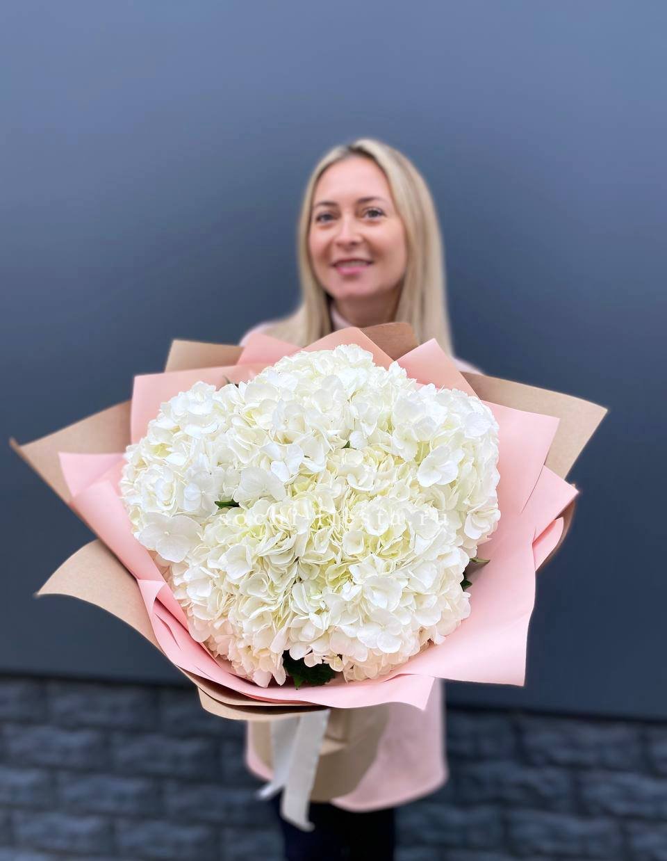 гортензия 15 шт., лента, дизайнерская упаковка.