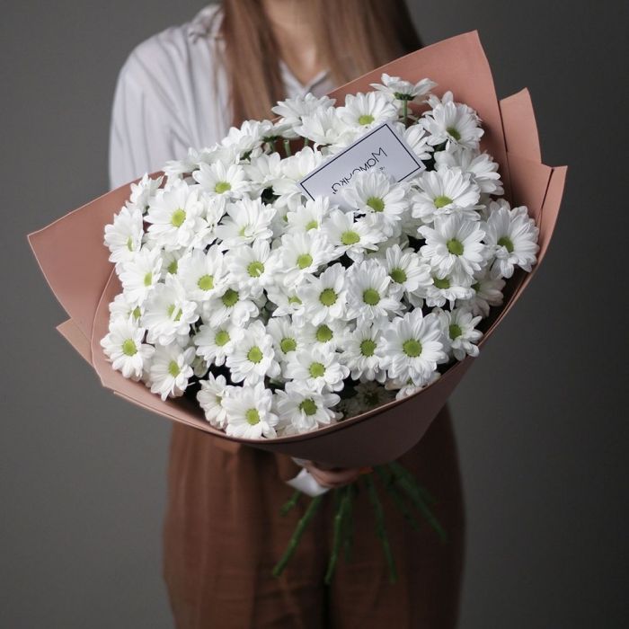 Семь пышных хризантем с коробочками хлопка собраны в мягкую композицию пастельных оттенков. Воздушная сборка и естественные линии создают ощущение легкости. Букет для тихих встреч и теплых слов.