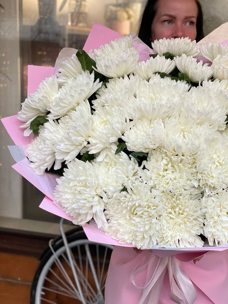хризантема одноголовая 7 шт., лента, дизайнерская упаковка.