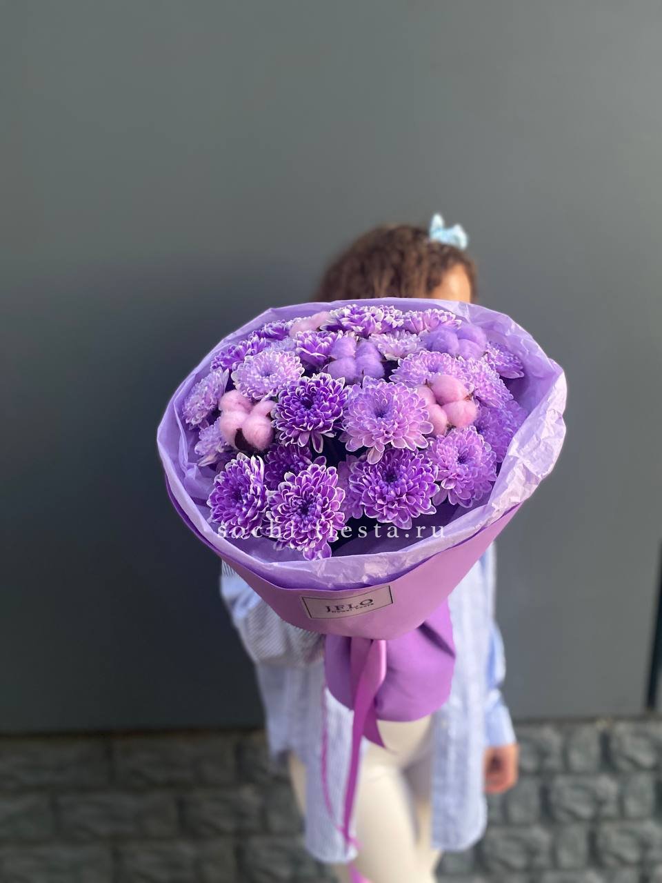 хризантема кустовая - 5шт., хлопок-5, оформление, лента.