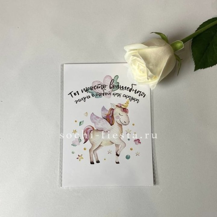 - Авторская открытка — с рукописным текстом от отправителя на фирменном бланке.
