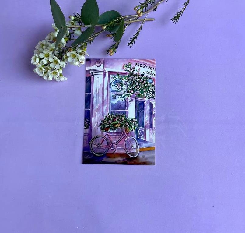 Открытка в розовой гамме с возможностью добавить текст от руки или напечатанный. Компактный формат позволяет разместить несколько предложений с личными пожеланиями.