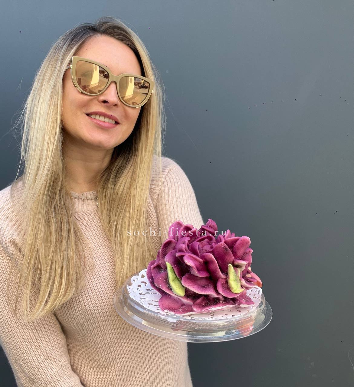 Зефир в форме пиона или розы повторяет фактуру живых лепестков. Каждый цветок сделан из натуральных ингредиентов и может стать сладким дополнением к основному букету.