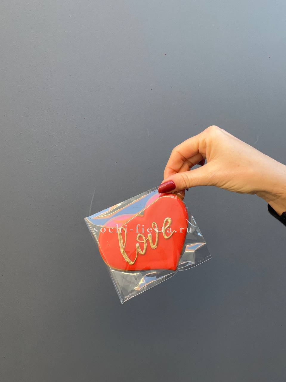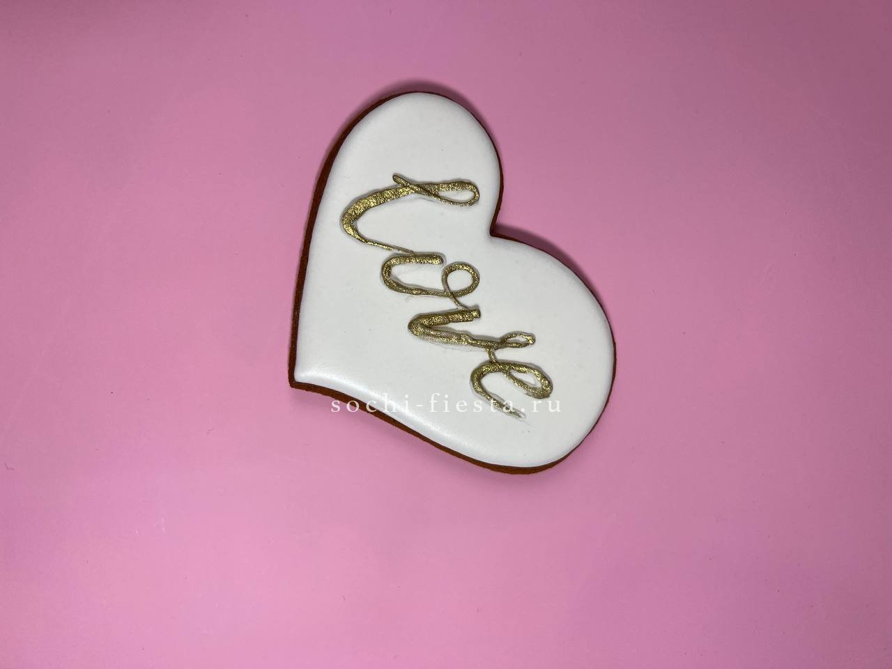 Пряник с ручной росписью готов дополнить цветочную композицию. Каждый рисунок уникален, а сама форма держит четкие края и аккуратные линии глазури.