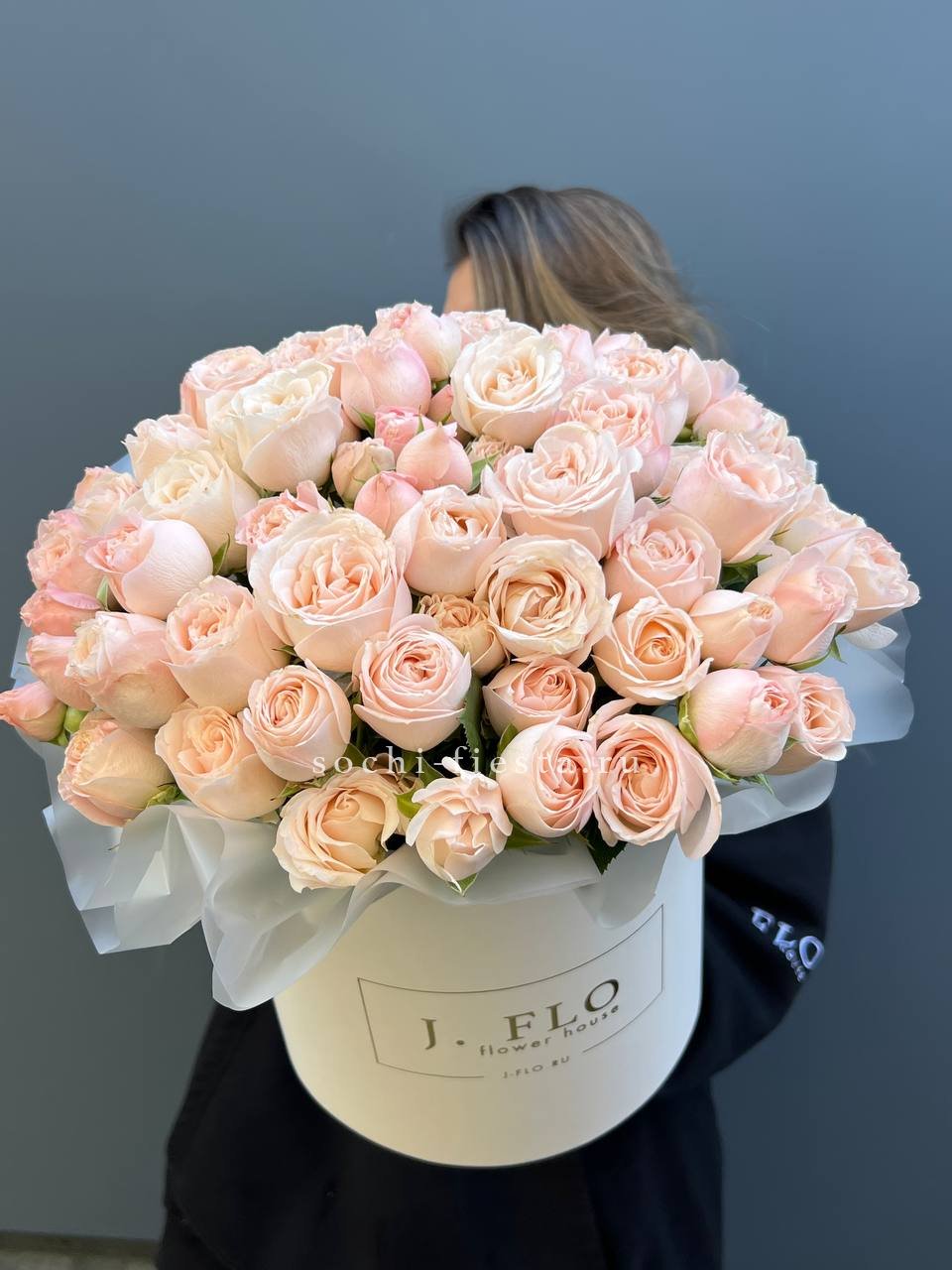роза, диантус, пионы или гортензия, розы, бомбастик, эустома, декоративная зелень, цилиндр D16.