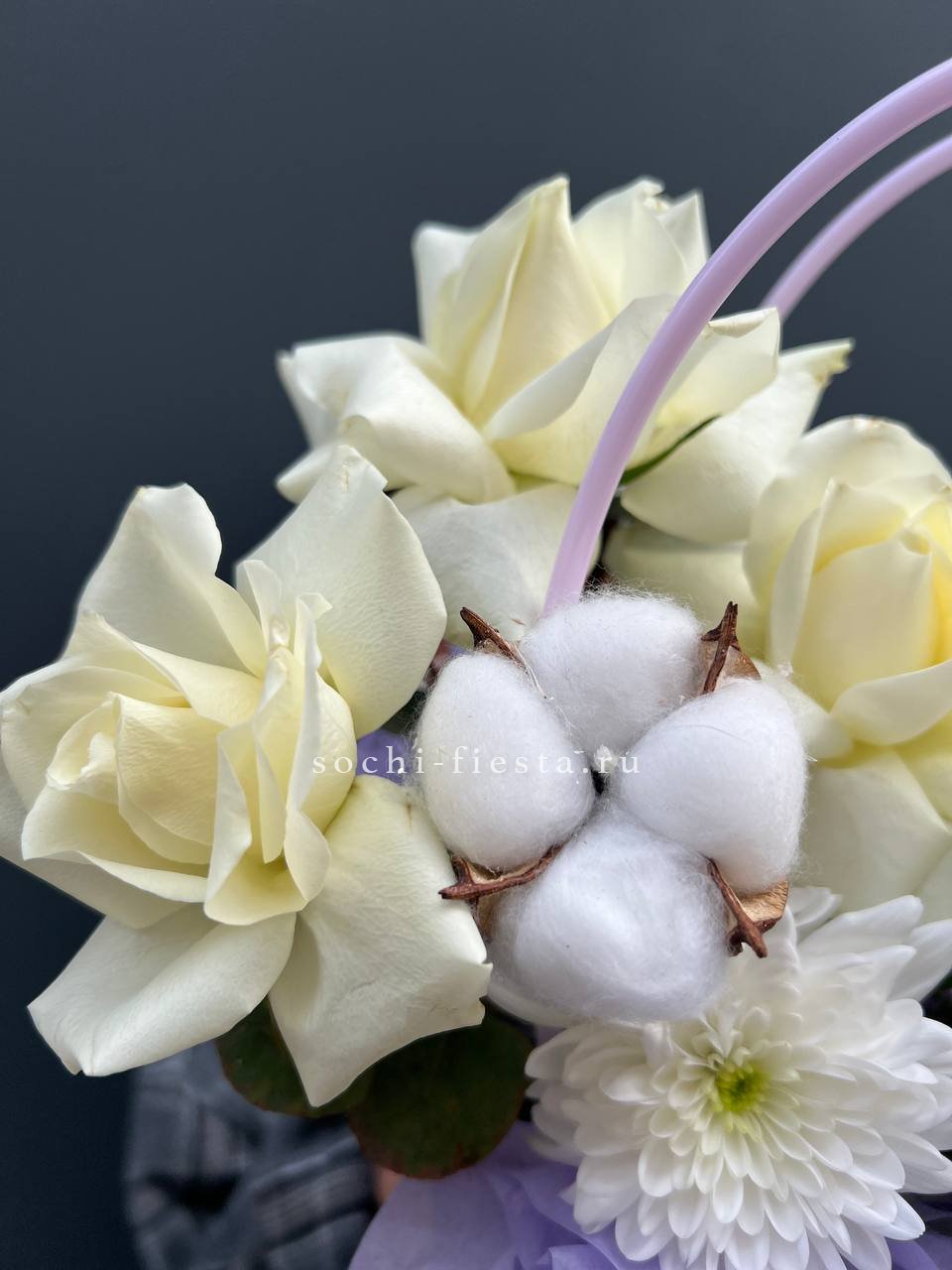 хризантемы, розы, верба, хлопок, эвкалипт, сумочка.