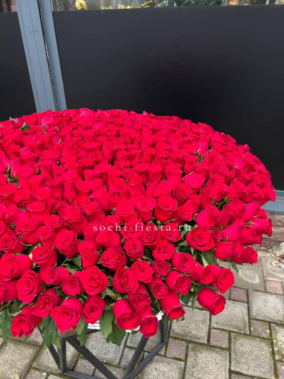 Пятьсот одна роза образует форму сердца из белых и красных бутонов. Плотная композиция в корзине удерживает симметрию и объём без дополнительных конструкций. Готовое решение для выражения чувств в масштабной форме.