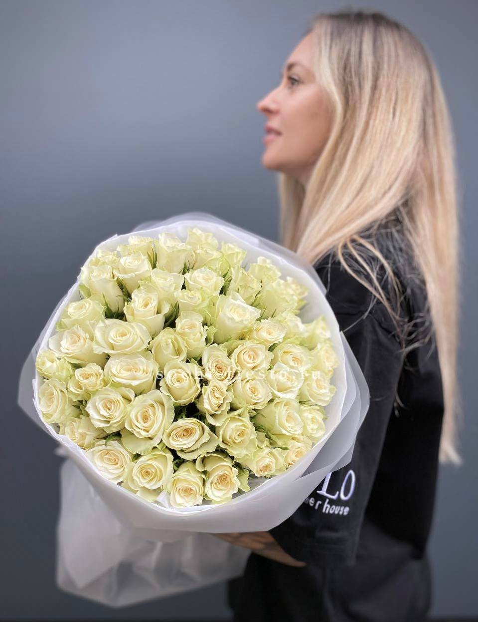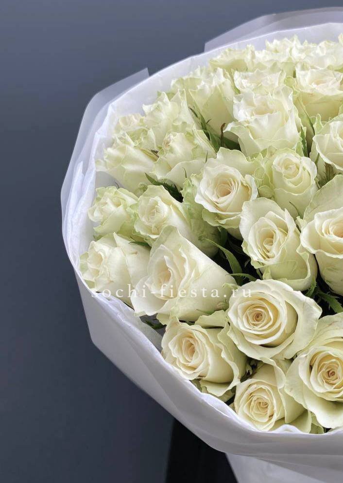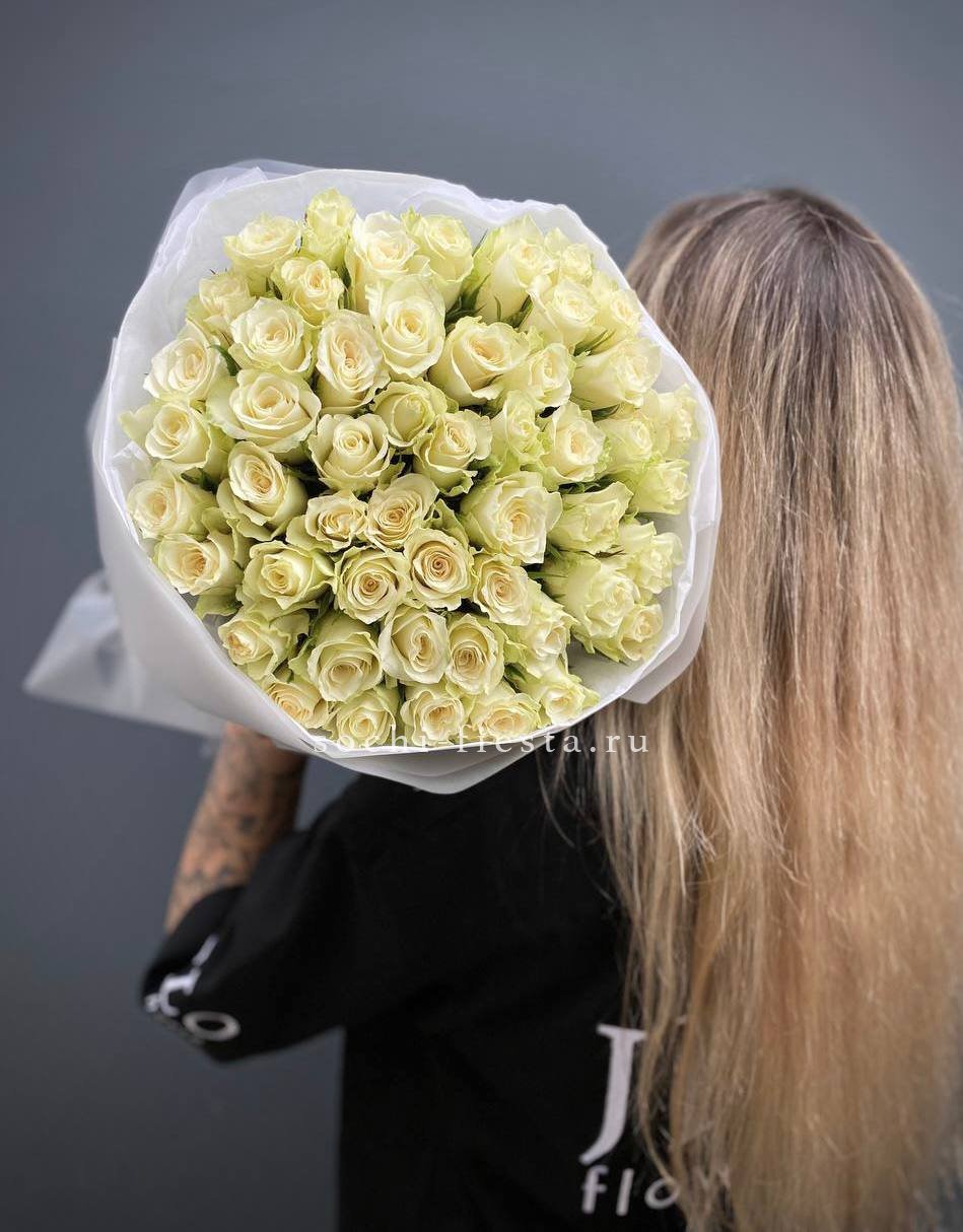 51 белая кенийская роза, лента, тишью, матовая пленка.