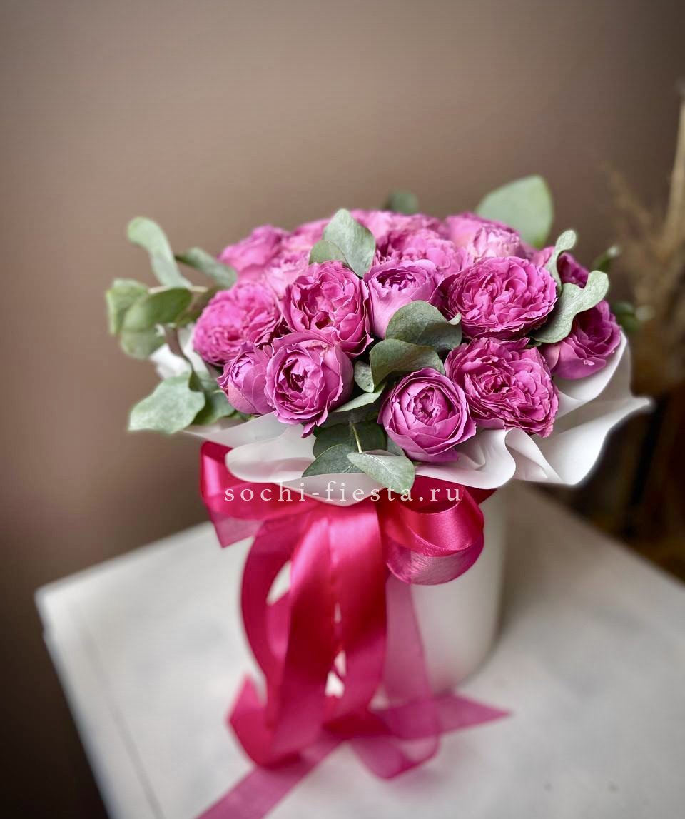 Минимальный состав: 35 пионовидных кустовых роз Мисти бабблс, лента, авторское оформление.